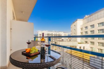 Апартамент подходит для проживания вдвоём на просторной двуспальной кровати размера "super king size" (180cm x 200cm) или родителей с ребёнком, который расположится на раскладной кровати. При желании двуспальную кровать можно раздвинуть на две кровати по 90см х 200см.