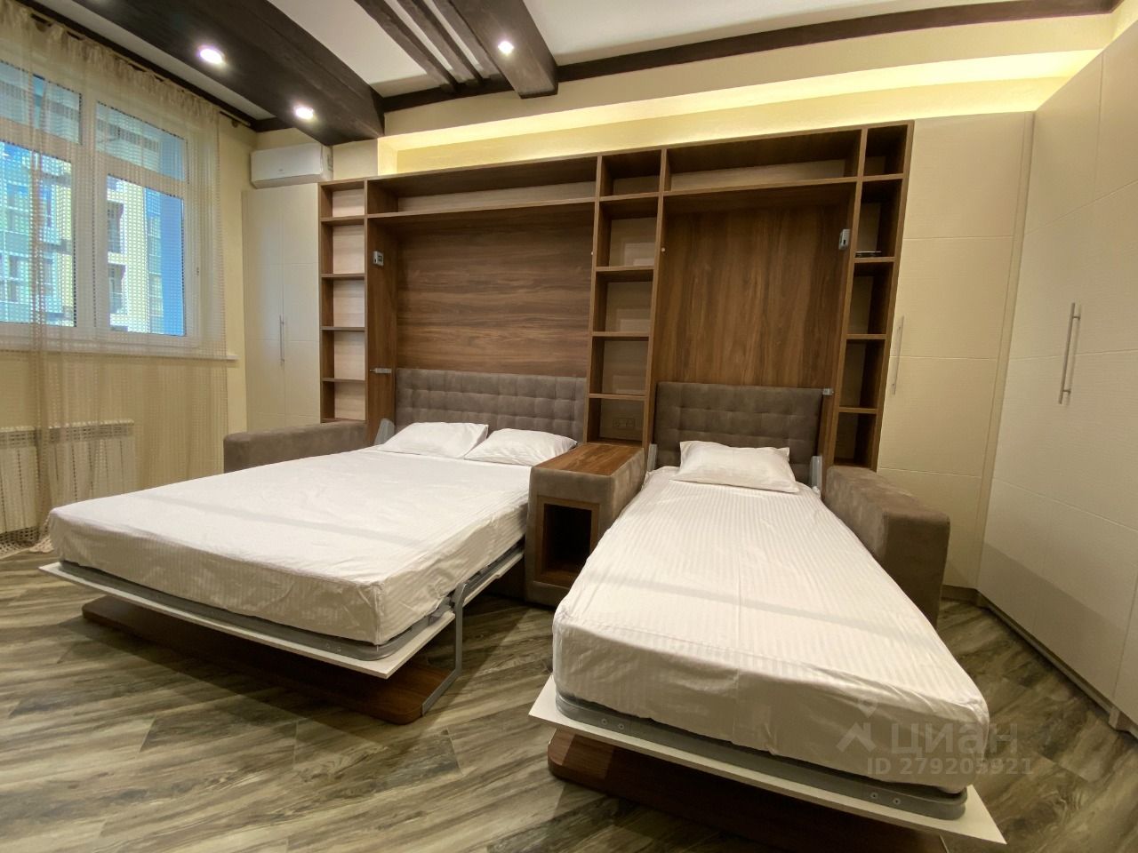 Просторная однокомнатная квартира премиум уровня с панорамными окнами. Шикарный вид на море с высоты 10 этажа. В квартире качественный ремонт. Квартира продуманна с точки зрения функциональности. Спальня оснащена двумя кроватями-трансформерами (собираются в диван и кресло с помощью гидравлических доводчиков) с ортопедическим матрасом и качественным постельным бельём.
