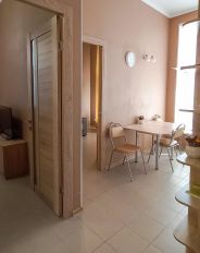 Две комнаты раздельные и кухня. Душевая кабина с тропическим душем и гидромассажем. Квартира полностью оборудована и оснащена всем необходимым для проживания. Кухня со всеми принадлежностями, полный комплект посуды на всю семью, микроволновка. Идеально для проживания 1-4 человек. Двуспальная кровать с ортопедическим матрасом в спальне и двуспальный диван в гостиной. Wi-Fi, кабельное телевидение, тёплый пол. Есть стиральная машина, фен, утюг, кондиционеры. Тихий двор. Рядом магазины, Магнит, кафе, бистро, остановка общественного транспорта.