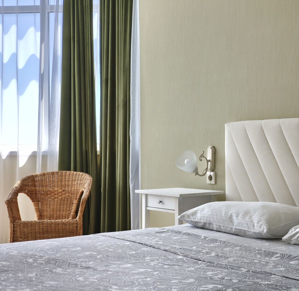 Стиральная машина, микроволновка, ванна, 2 кровати с ортопедическими матрасами.