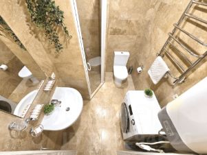 Душевая с стиральной машиной, феном и всеми удобствами.