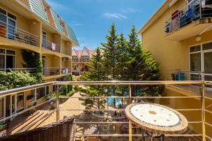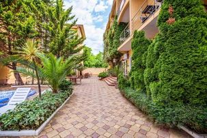 На территории есть б е с п л а т н ы й подогреваемый бассейн с шезлонгами для взрослых и гостей помладше!