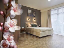 Просторный апартамент с функциональной планировкой, включающий отдельные зоны для сна, отдыха, работы. Полностью оснащенная кухня с посудомоечной машиной облегчает бытовые хлопоты.