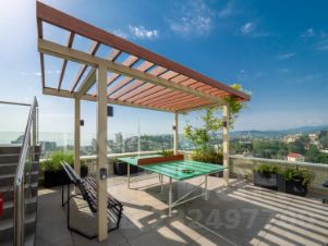 - эксплуатируемая кровля на 17 этаже комплекса с бассейном, зоной отдыха, душем, лежаками, спортивными снарядами, баскетбольной/футбольной площадкой, теннисным столом, детской площадкой.