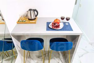 В апартаменте Вас ждет чайная станция с набором для приготовления чая, тарелки, стаканы, столовые приборы и холодильник, а также микроволновка.