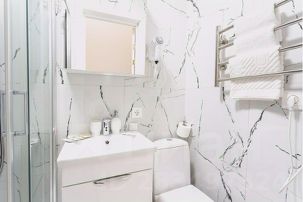Оборудован всем необходимым для комфортного пребывания: постельное белье, полотенца, фен. Туалетные принадлежности: шампунь, гель для душа.