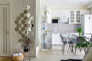 В кухне-гостиной — раскладной двуспальный диван.