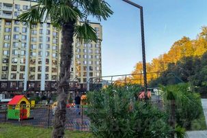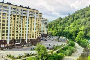 Квартира расположена в комплексе бизнес-класса "Кватро", в живописном и экологически чистом районе Сочи. На территории комплекса имеется облагороженная набережная с лавочками вдоль горной реки, предоставляющая идеальные условия для отдыха.