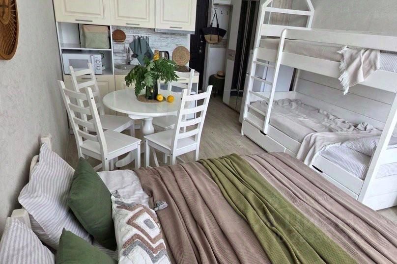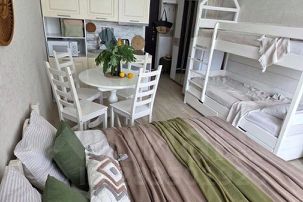 В квартире 4 спальных места (2 односпальные кровати и двухъярусная кровать).