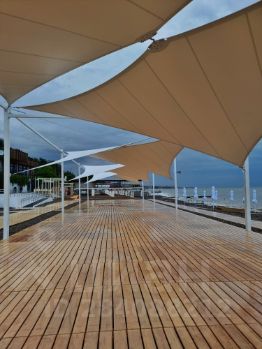 До моря 5-7 минут ходьбы вдоль набережной реки. Все в пешей доступности.