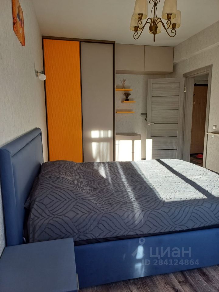 В комнате новая кровать с дорогим ортопедическим матрасом, встроенная вместительная гардеробная. Диван на кухне раскладывается в полноценное двуспальное место.