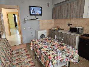 Квартира очень большая - 70 м2. С удобной планировкой . 2 отдельные комнаты-спальни ( не проходные , не смежные) и кухня- гостиная . Вход в каждую отдельно из коридора . Туалет и ванная - раздельные помещения . Есть балкон с видом на горы.