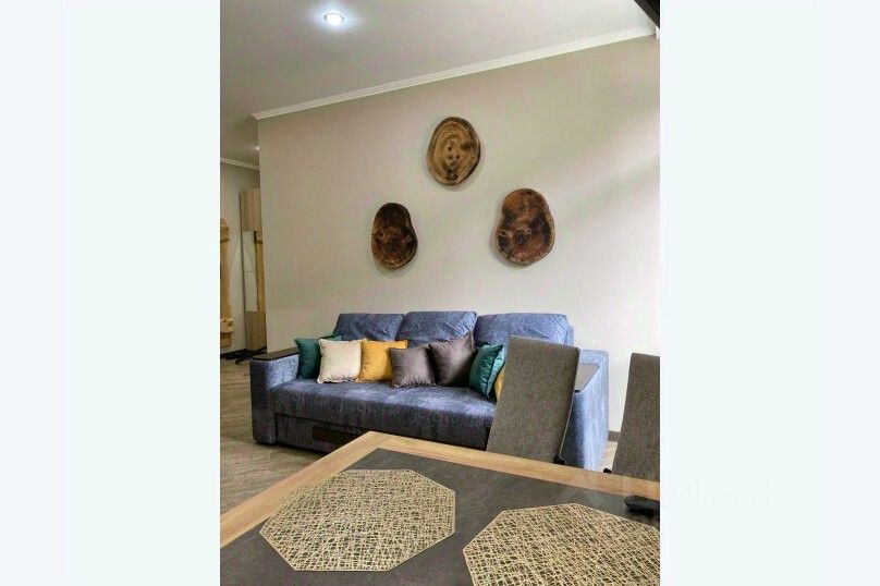 Гостиная совмещена с кухней, там двуспальный диван, спальня отдельно , в ней большая двуспальная кровать и диван на двоих. Дополнительно оплачивается финишная уборка 1.800 руб и проживание питомцев 1.500 руб за весь период проживания.