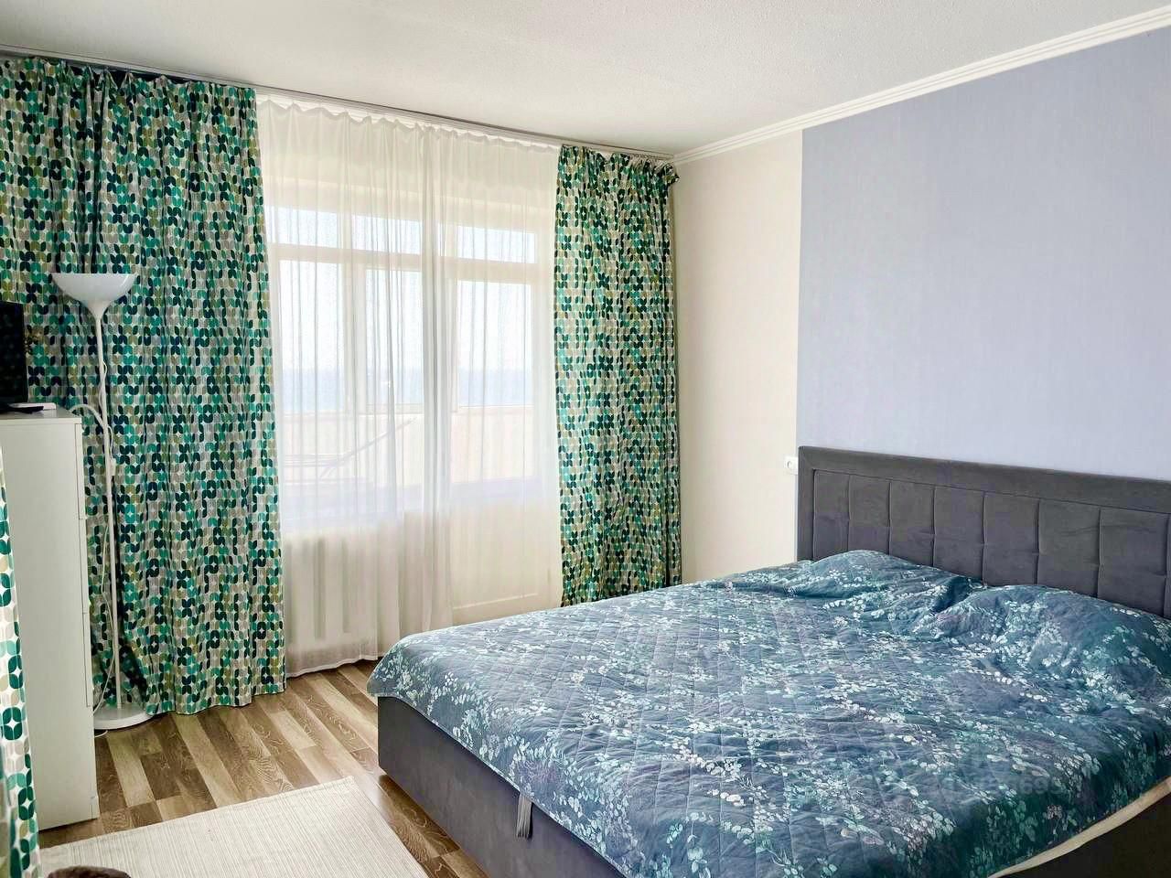 Светлая двухкомнатная квартира со свежим ремонтом в высотном доме с шикарным видом на море. Расстояние до моря пешком всего 15 минут, вдалеке от шумной набережной и туристических улиц. Своя паковка перед домом под шлагбаумом. Детская площадка на территории дома, баскетбольная и воркаут площадка напротив дома. В шаговой доступности продуктовый магазин, аптека, пекарня, кулинария, вайлдберриз.