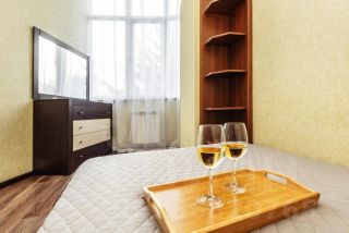 Евротрешка: 2 спальни (2 двуспальные кровать) и кухня-гостиная (большой и комфортный раскладывающийся диван), гардеробная, санузел, прихожая. Общая площадь 42 м2. Выделена обеденная зона в лоджии. Квартира расположена на 3 этаже.