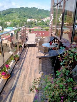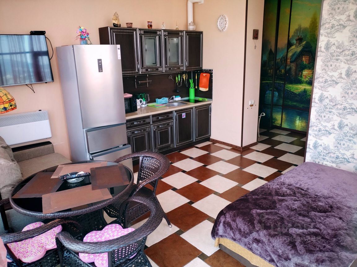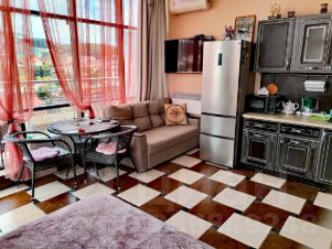 Квартира студия с видом на море. Огромная угловая лоджия с видом на море и горы, есть лежак можно загорать. Заезд от 5 суток, после 14 час, выезд до 12 час, остальное время по договоренности. В квартире есть всё необходимое для комфортного проживания и отдыха, бельё, полотенца, фен, телевизор+триколор, интернет. Под домом платная парковка. На первом этаже дома магазин Красное Белое. Недалеко магазин Магнит, Пятерочка, Перекресток, Фикс прайс, Сбербанк. Много кафе, столовых, закусочных. Недалеко Океанариум, Дельфинарий, открытый бассейн платно, парк динозавров. Рядом остановка общественного транспорта в любое направление недалеко остановка "Известия,, электропоезда Ласточка.