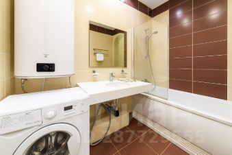 Ванная комната с полотенцами, тапочками, феном и стиральной машиной — всё для вашего удобства.