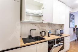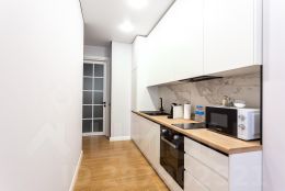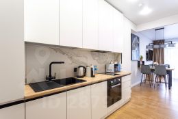 — Холодильник, духовой шкаф, микроволновая печь, индукционная плита, посудомоечная машина, чайник, кофемашина, вытяжка.