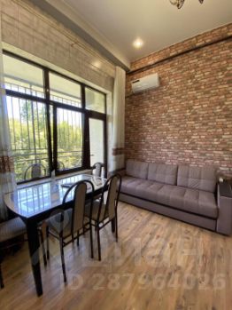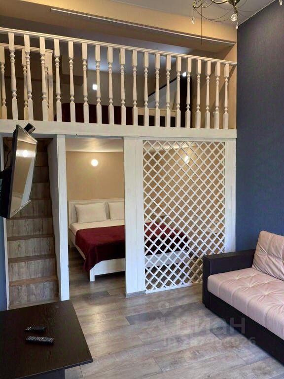 К услугам гостей светлые апартаменты с лоджией и высокими потолками с ремонтом 2019 года. Квартира представляет собой кухню, гостиную и спальню, имеется второй уровень с санузлом и спальными местами. Дом расположен на закрытой территории, во дворе есть детская площадка.