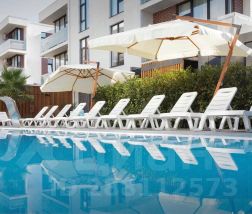 GP 1: зона отдыха со скамейками, озеленением, детской площадкой, спорт.площадкой, теннисный стол, открытый бассейн без подогрева с детским бассейном, на территории туалет, душ, лежаки.