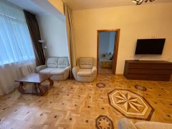 2-комнатная просторная квартира (Общая площадь - 86,7 кв. м) в тихом месте с большой столовой-кухней (площадь 24,1 кв. м), 5 спальными местами, 2 рабочими местами, раздельными ванной и туалетом. Столовая, совмещённая с кухней, в которой также отдельное спальное место (по сути это 3-я комната площадью 24,1 кв. м). Отлично подойдёт для большой семьи с детьми. В квартире есть все необходимое для жизни. В 15 мин ходьбы от городского пляжа, рядом парк и Дендрарий, в пешей доступности необходимые магазины, цирк, Зимний театр, рестораны, кафе. В 2 мин ходьбы Лицей 22. Парковка во дворе дома, за оградой. Свежий ремонт. Строго без животных. Курить запрещено. Арендная плата указана для срока аренды не менее 11 месяцев.
