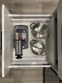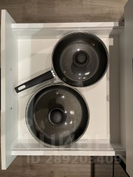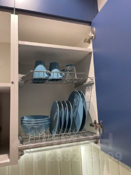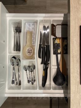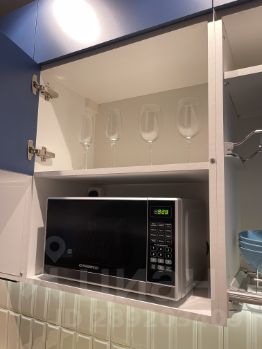 Кухонный блок оборудован кухонным гарнитуром, включающим: варочную панель, встроенную вытяжку, двухкамерный холодильник, микроволновую печь, чайник. Имеется вся необходимая посуда, столовые приборы, а также приветственный набор: чай, кофе, сахар, соль, перец, шоколад и прохладительные напитки.