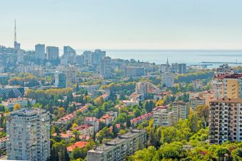 В центре Сочи. В ЖК Сияние Сочи видовая квартира с замечательным видом на город, горы и море, на 17 этаже 19 этажного дома. Есть вся необходимая мебель и бытовая техника, посуда и постельное бельё. Наполнена всем необходимым для комфортного отдыха. Собственная придомовая территория.