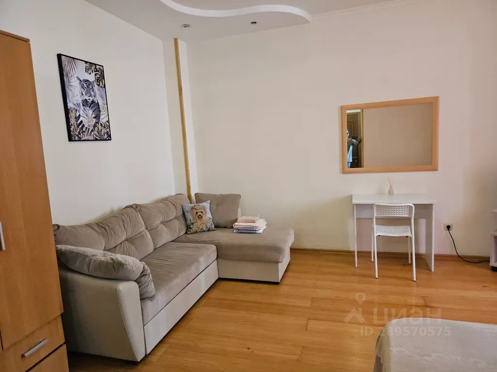 Стандартная однокомнатная квартира. Спальня и кухня - отдельные помещения и разделены дверью. В комнате - 2 спальный диван и 2 спальная-кровать, телевизор. Кухня: плита, микроволновая печь, чайник, холодильник, посуда. Санузел: ванна, туалет, раковина, стиральная машина. Лоджия - застекленная. Отопление. водоснабжение - центральное. Кондиционер- есть.