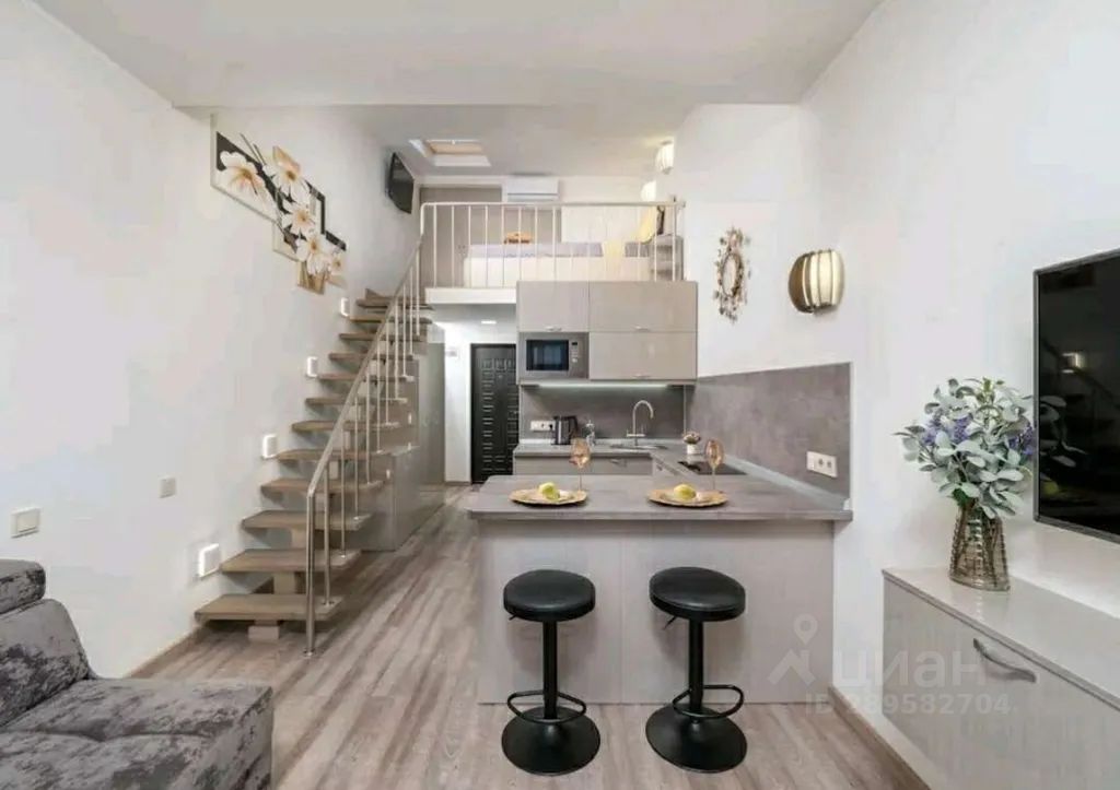 Площадь апартаментов 25+9 кв.м, 4 этаж (лифта нет).