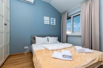 Есть всё для комфортного проживания: современное кухонное оборудование, набор посуды и столовых приборов, качественная сантехника. Уборка перед Вашим заселением, постельное белье и полотенца уже включены в стоимость проживания. Рядом с домом расположена парковка.