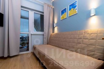 Изолированная спальня с двуспальной кроватью и кухня-гостиная с раскладным диваном.