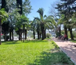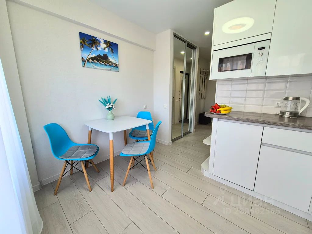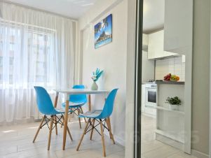Квартира находится в спальном районе, ровное место, никаких гор, развитая инфраструктура, рядом с домом (в 30 метрах от дома) новый сквер с пальмами, детская площадка, теннисный корт, автобусная остановка в 30 метрах от дома, через дорогу "Пятерочка", "Моремолл".