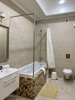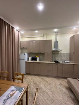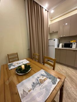 В квартире полностью подогреваемый пол, оснащена стиральной машинкой, ванная, просторная кухня с газовой плитой, большой удобный холодильник, телевизор с бесплатным Wi-fi, набор посуды для приготовления пищи, фужеры для шампанского, стаканы для сока, столовые приборы.