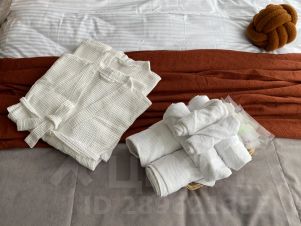 Помимо всей бытовой и климатической техники, всегда полные комплекты из 4-х полотенец каждому гостю. Бесплатная смена белья, полотенец и тапочек в упаковке.