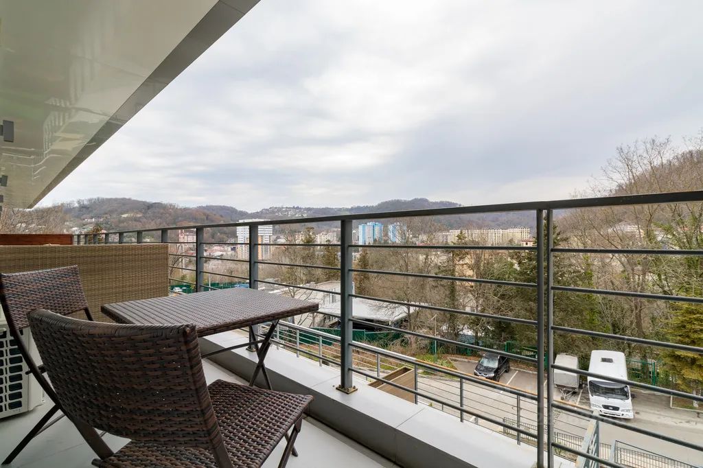 Улучшенные апартаменты #5508 студия, выполненные в дизайнерском стиле. Идеальный вариант для размещения до 3-х гостей. Для удобства гостей апартаменты оснащены итальянской двуспальной раскладывающейся кроватью и одноместным диваном-кроватью, необходимой мебелью и бытовой техникой. Общая площадь — 40 кв.м. Апартаменты расположены на 2-м этаже с видом на горы, которым вы можете любоваться с собственной террасы. Терраса оснащена набором плетенной мебели. Апартаменты имеют панорамное витражное остекление и москитные сетки.