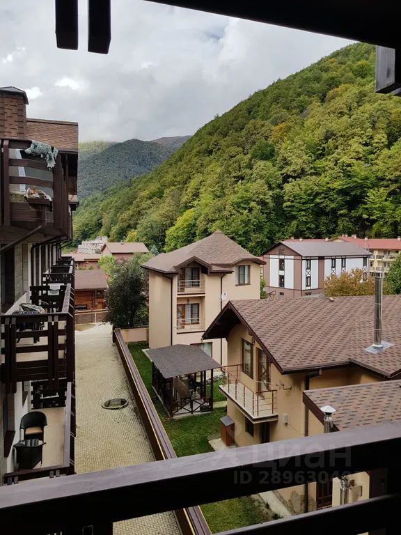 Дом находится на второй линии в очень живописном месте, с лоджии открывается шикарный вид на горы.