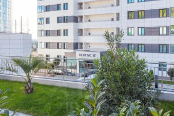 2 двуспальных раскладных дивана, 1 кресло кровать. Из удобств: теплые полы, кондиционер, огромный телевизор, новая мебель, посуда, оборудованная кухня, холодильник, микроволновка, электрочайник, утюг, гладильная доска, фен, бельё, полотенца, кабельное телевидение, wi-fi. Во дворе предусмотрены детские и спортивные площадки, мангальная зона, парковка,на территории комплекса есть открытый не подогреваемый Платный бассейн (работает только летом). В 50 метрах от дома расположены "перекресток", аптека, кафе.