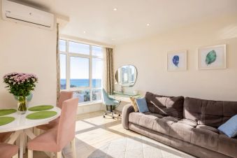 Наслаждайтесь морскими видами, готовьте любимые блюда на современной кухне и отдыхайте в уютной атмосфере премиального жилья в центре Сочи.