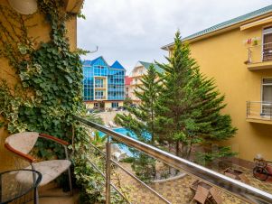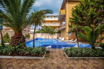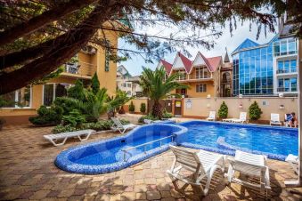 На территории есть б е с п л а т н ы й подогреваемый бассейн с шезлонгами для взрослых и гостей помладше!