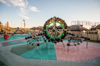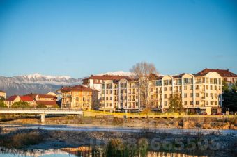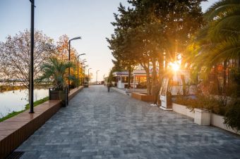 Апартаменты расположены в апарт-комплексе "Розмарин" в 5 минутах ходьбы от берега моря. Здание находится на набережной реки Мзымта, именно в этом месте река впадает в море, поэтому вид из окон впечатляющий. На 1 этаже здания расположены достойные столовые с приемлемыми ценами "Ем и ем" и "Южная", несколько маленьких уютных ресторанчиков и кофейня с вкуснейшими капучино и круассанами.