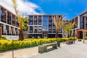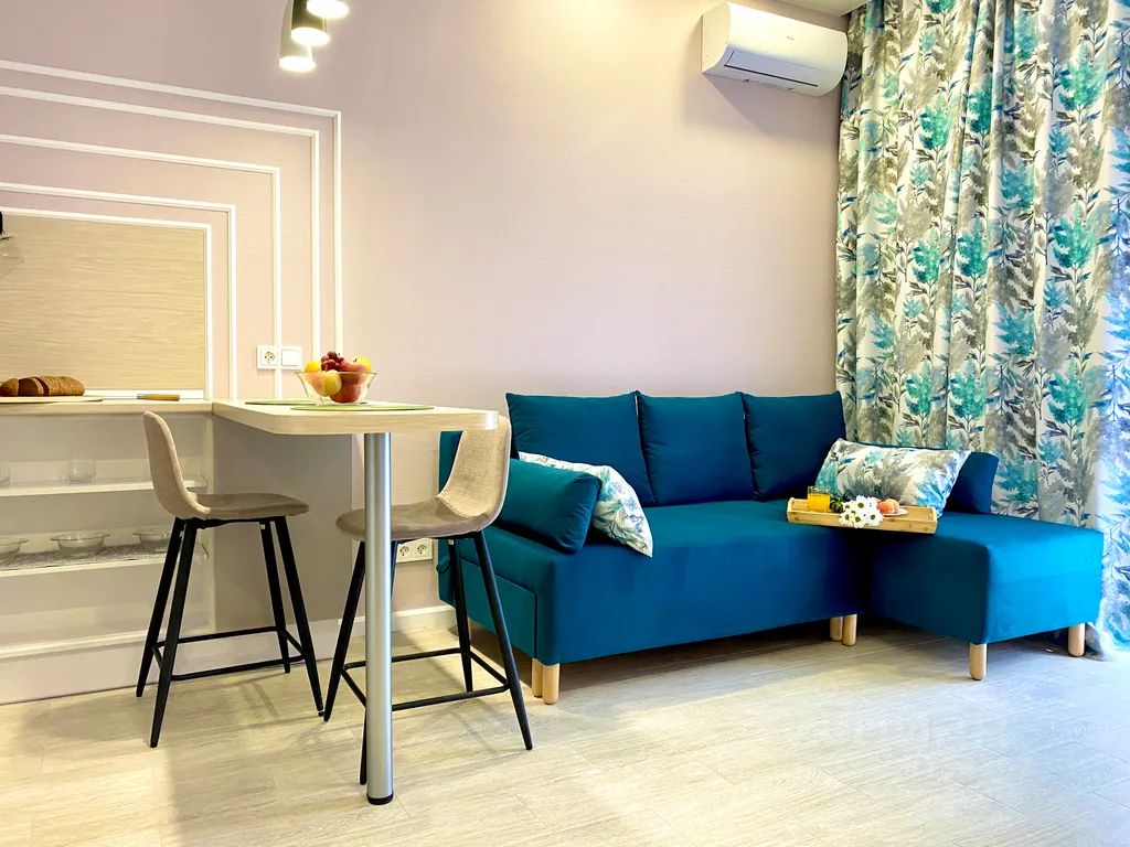 Уютная студия в ЖК комфорт-класса "Морской квартал". Два собственных бассейна, детские площадки и суперлокация: 7 минут пешком до пляжа, рядом магазины: "Магнит", "Пятёрочка", аптека. Множество кафе и столовых. В шаговой доступности ж/д станция, до центра Сочи 30 мин.
