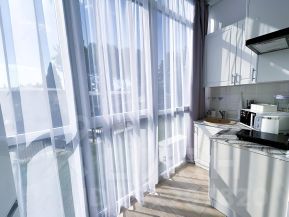 Апартаменты фактически состоят из частично изолированной спальни и гостиной, до 4-х человек (полноценная кровать для 2-х человек в комнате и диван-кровать для 2-х человек в гостиной). Дети от 0 лет приветствуются.