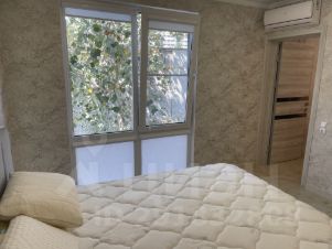В квартире есть просторная, светлая спальня (с кондиционером), а так же двуспальная кровать с ортопедическим матрацем, душевая комната, далее гостиная с двуспальным удобным диваном ( с кондиционером) телевизором, кухней и обеденным столом. Возможно добавить доп.место ( на фото за диваном ), безлимитный интернет.