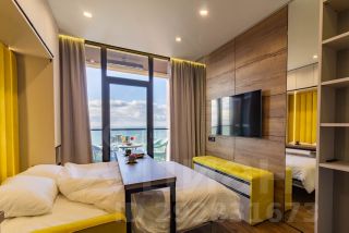 Апартаменты с балконом и видом на море. В студии расположена двуспальная кровать, прикроватные тумбочки, журнальный столик. Оборудованная кухня, столовые приборы, посуда, чайник электрический, электрическая плита, холодильник. В санузле фен, стиральная машина, душевая кабина, унитаз, полотенца и средства гигиены. Апартаменты оборудованы кондиционером, телевизором с кабельным/цифровым тв, wi-fi, утюгом, сушилкой. Гостям предоставляется постельное бельё.