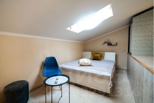 На втором уровне — спальня с мансардным окном, мягкой кроватью и тёплым светом. Здесь вы погрузитесь в спокойный сон после дня, наполненного впечатлениями.