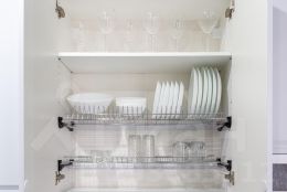 — Холодильник, микроволновая печь, варочная панель, духовой шкаф, чайник, кофемашина, вытяжка, посудомоечная машина.