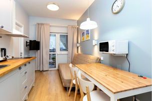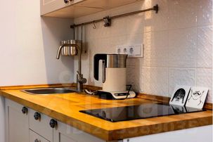 В квартире есть всё необходимое для комфортного проживания: современное кухонное оборудование, набор посуды и столовых приборов, качественное сантехническое оборудование. Уборка перед Вашим заселением, постельное белье и полотенца уже включены в стоимость проживания.