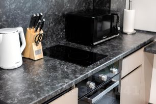 — Холодильник, варочная панель, духовой шкаф, микроволновая печь, посудомоечная машина, чайник, капсульная кофемашина