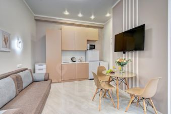 Еще данные апартаменты идеально подойдут гостям, если вы хотите получить санаторно- курортное лечение в санатории "Знание", но проживать в апартаментах. Санаторий находиться в пешей доступности.