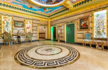 Открытая парковка во дворе дома за шлагбаумом.Есть бассейн с подогревом.